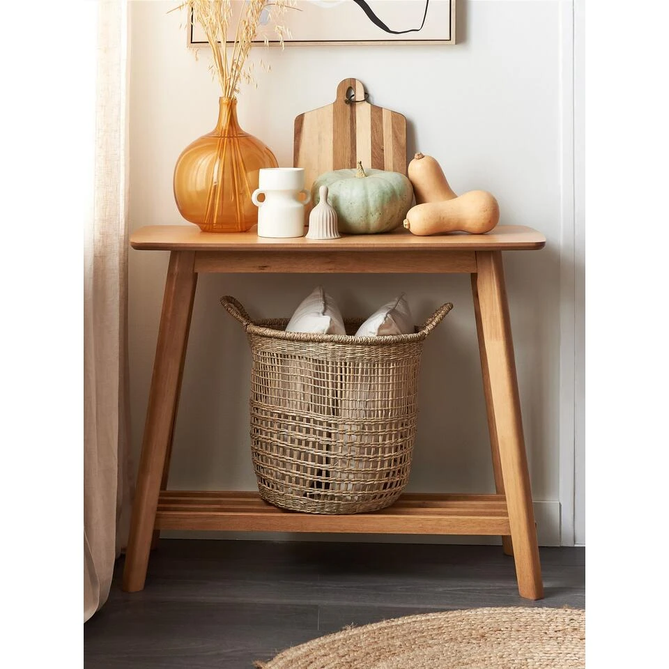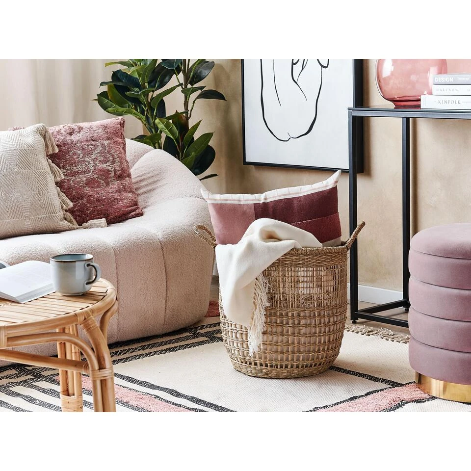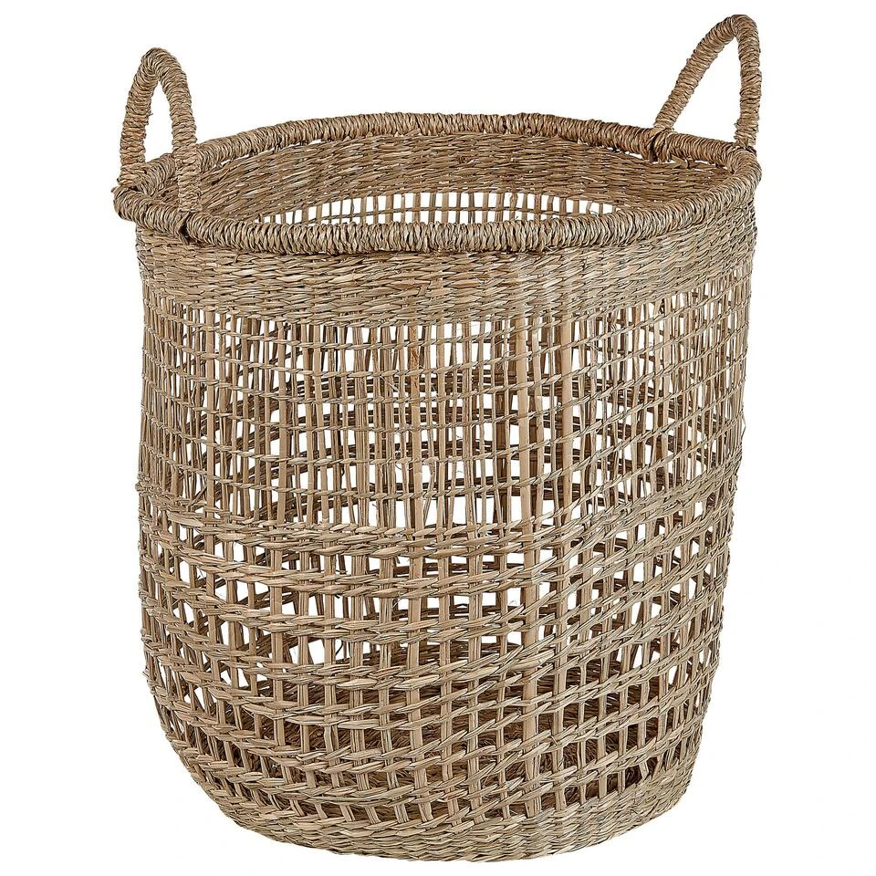 Handgeweven Mand. Deze mooie mand van zeegras zal zeker zijn plekje vinden in je huis. Het is een geweldige opslag voor extra dekens en kussens, voor de was, of voor speelgoed. Dankzij de handvatten kunt u hem gemakkelijk verplaatsen. De mand is zowel een decoratief als functioneel accentstuk, dat een natuurlijke uitstraling zal geven aan elk interieur